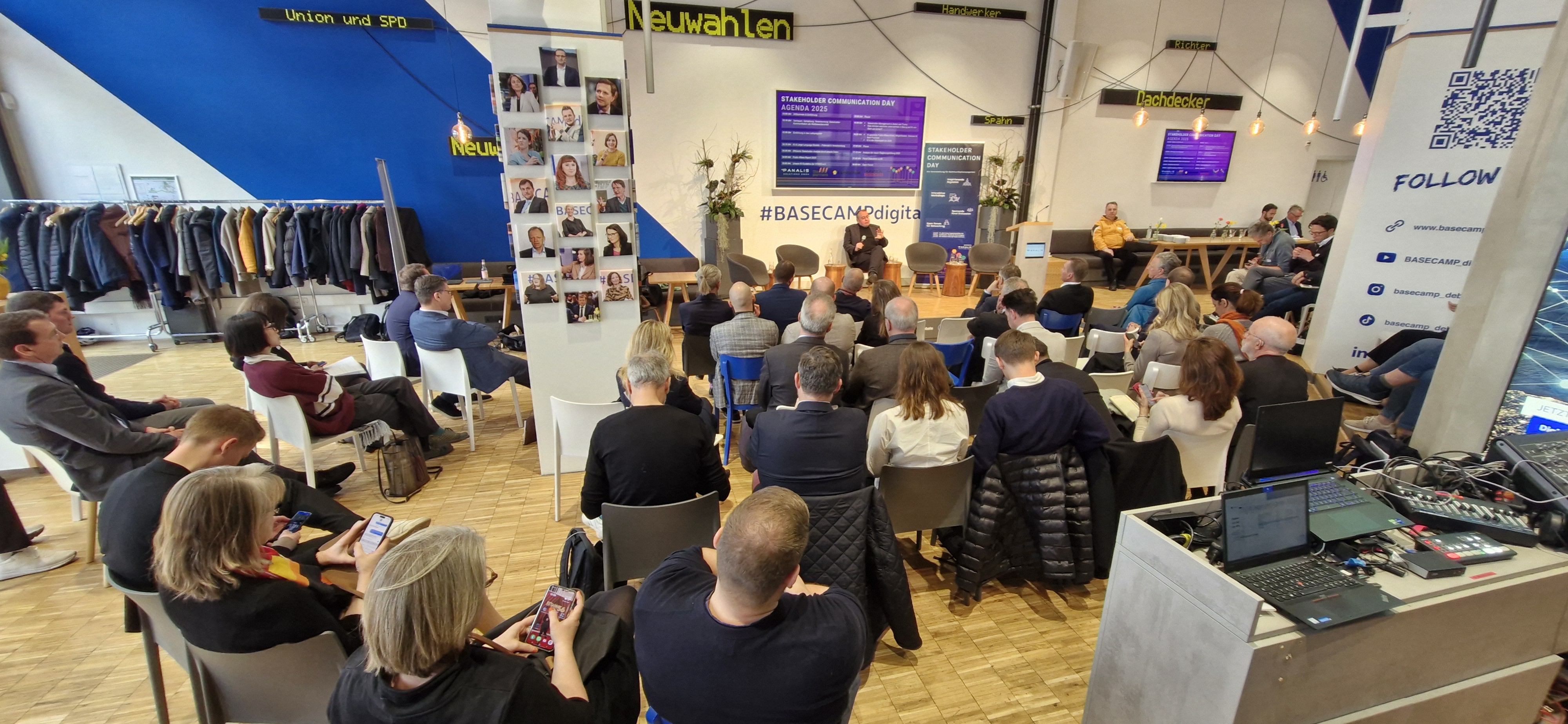 Am 10. April 2025 versammelten sich im Berliner BASECAMP Fachleute aus Politik, Wirtschaft, Verwaltung und Verbänden zum Stakeholder Communication Day. Der Nachmittag stand ganz im Zeichen aktueller Herausforderungen und Chancen der Stakeholder-Kommunikation – in einem Umfeld, das sich durch gesellschaftlichen Wandel, digitale Dynamik und zunehmende regulatorische Anforderungen stetig verändert. Im Fokus standen Themen wie Transparenz, der verantwortungsvolle Einsatz von Künstlicher Intelligenz in Public Affairs und die Rolle von Kommunikation als Brücke zwischen Organisationen und politischen Prozessen.